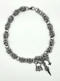 Handmade stainless steel Charm Necklace. This piece is woven by hand and has been tumbled and polished for a smooth finish.