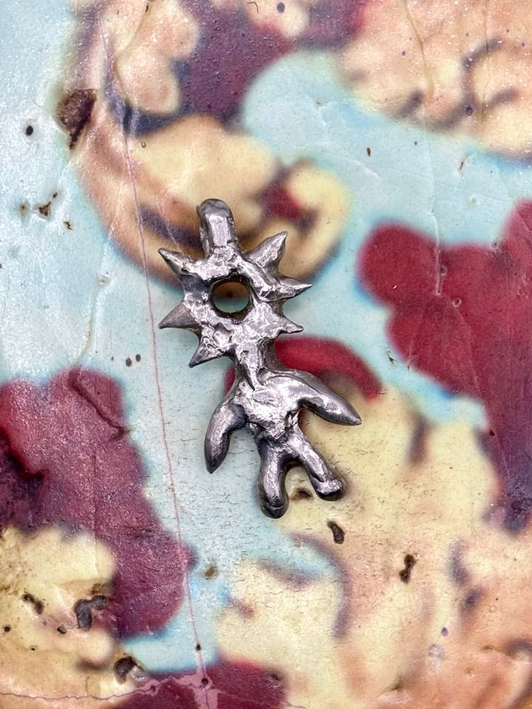 This pendant hangs from an 18” stainless steel chain. Please mention in notes at checkout if you’d like a different length.