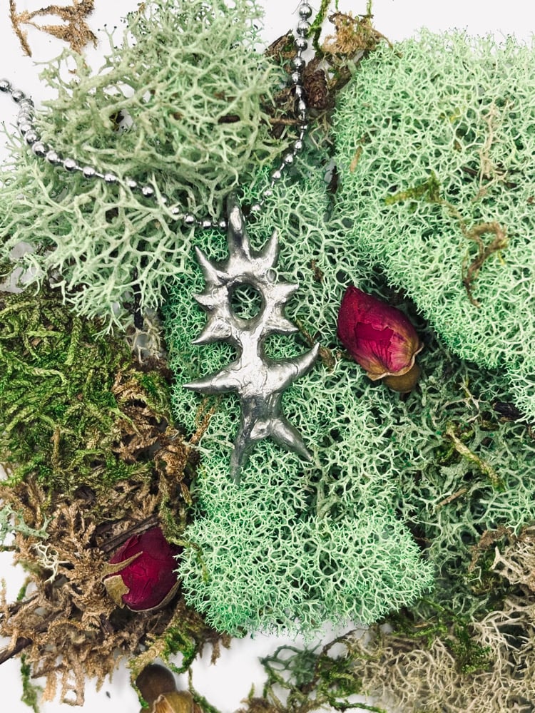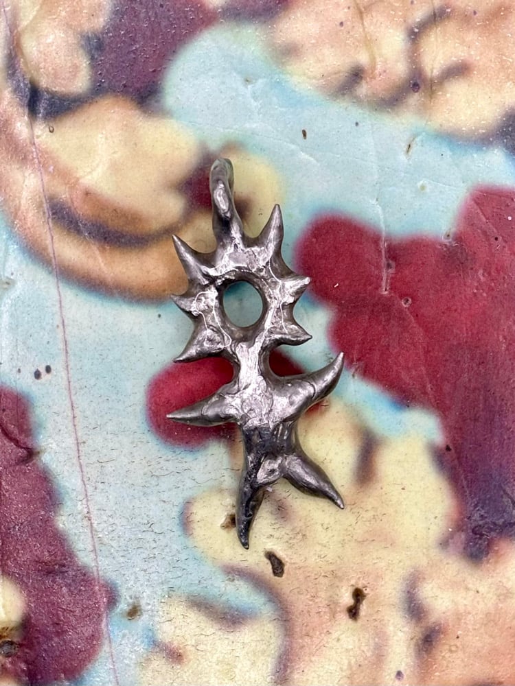 This pendant hangs from an 18” stainless steel chain. Please mention in notes at checkout if you’d like a different length.