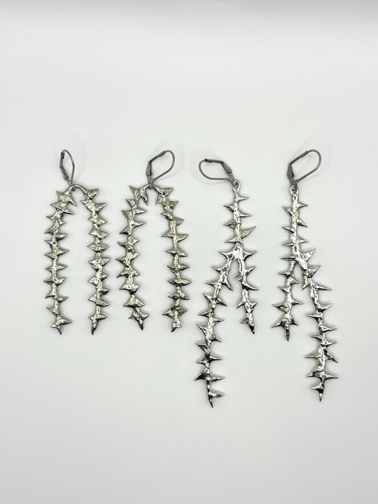 Each Thorn earring is perfectly imperfect, no two are the same. Please be cautious of snags & pokes while wearing. Made with lead-free silver solder.